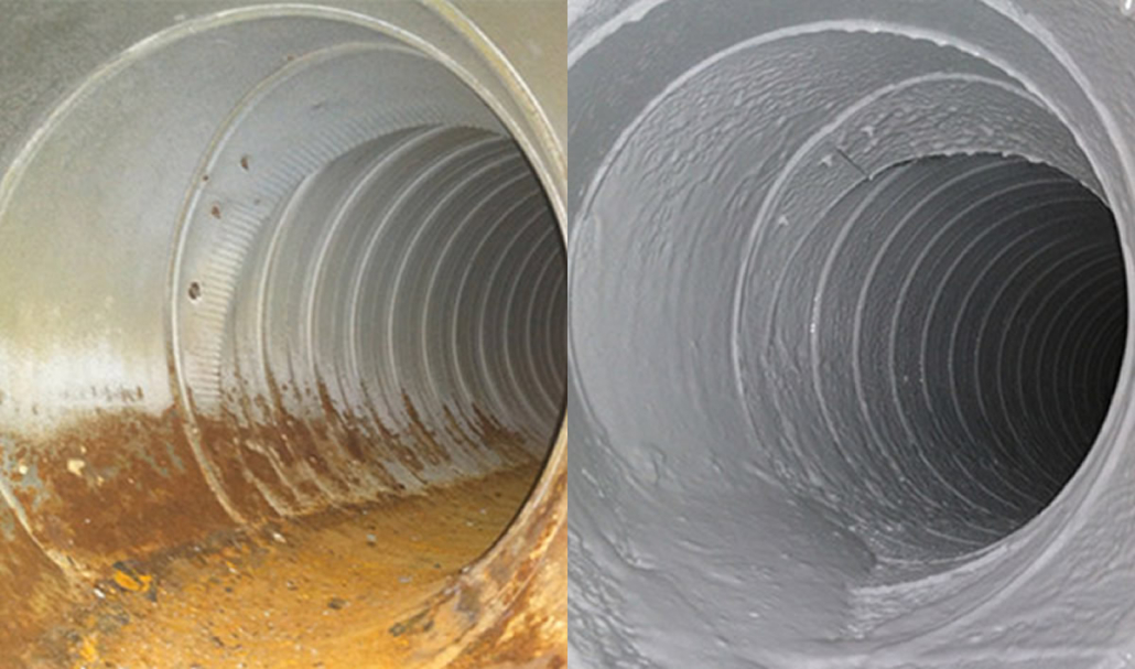 Duct Armor is a rubberized, water-based liner sprayed inside your existing ducts to form a continuous, waterproof coating. It seals leaks, blocks future moisture, and locks in rust and debris so they don’t blow into your home’s air. The material is mold-resistant, which helps reduce musty smells and supports healthier indoor air.